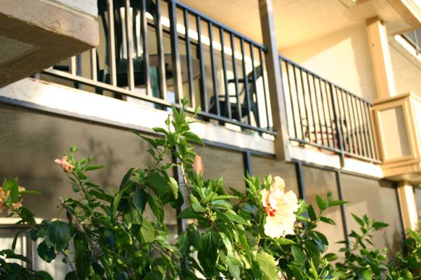 The condo is located on the second floor so one can enjoy sitting on the sunny balcony above any pedestrian traffic that might be passing by. An elevator helps you moving your luggage from the car to the unit.